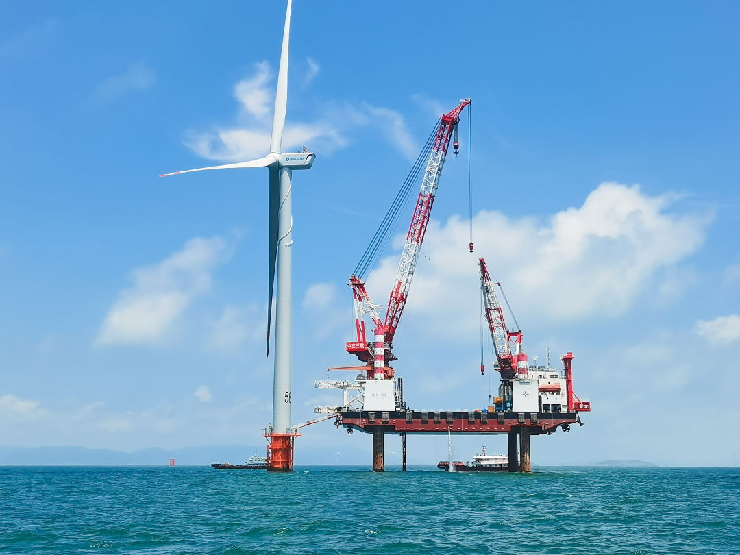 56台海优势电机组每一座都有43层楼的高度,全容量并网后,预计年上网电量高达16.4亿千瓦时。